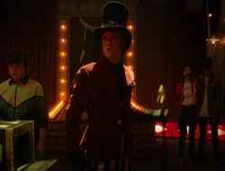 Suddenly, with a wave of his cane all members of the audience all pause and freeze in time. Mr. Tophat explains to her, that he knew that one day a child who would be impervious to his powers would come forward: A child who would remember. He reveals to Rachel that after the first time she left the carnival she forgot all about it. Just like everyone else did. However a part of these memories stayed within her subconscious. Which kept visions of him. What she thought was her nightmares and stories, were just her own confused memories. He tells her that he could feel that her fear was unique. In fact it was different from everyone else. He felt that they were connected.
